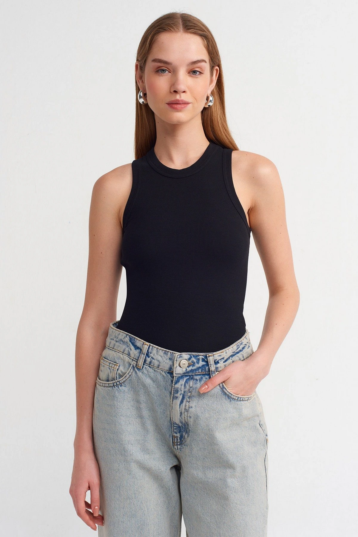 HALTER YAKA FİTİLLİ PAMUK ATLET – SİYAH