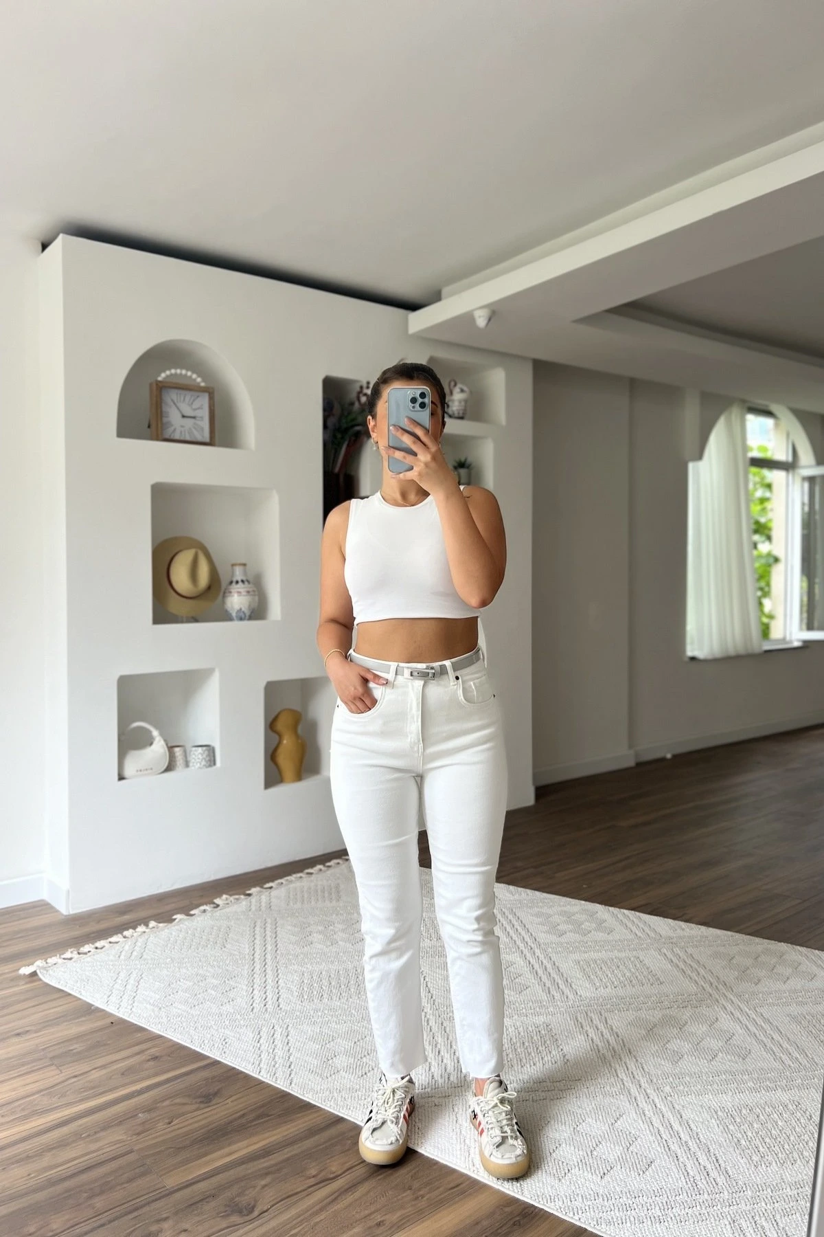 KESİK PAÇA YÜKSEK BEL BOYFİT LİKRALI JEAN – BEYAZ