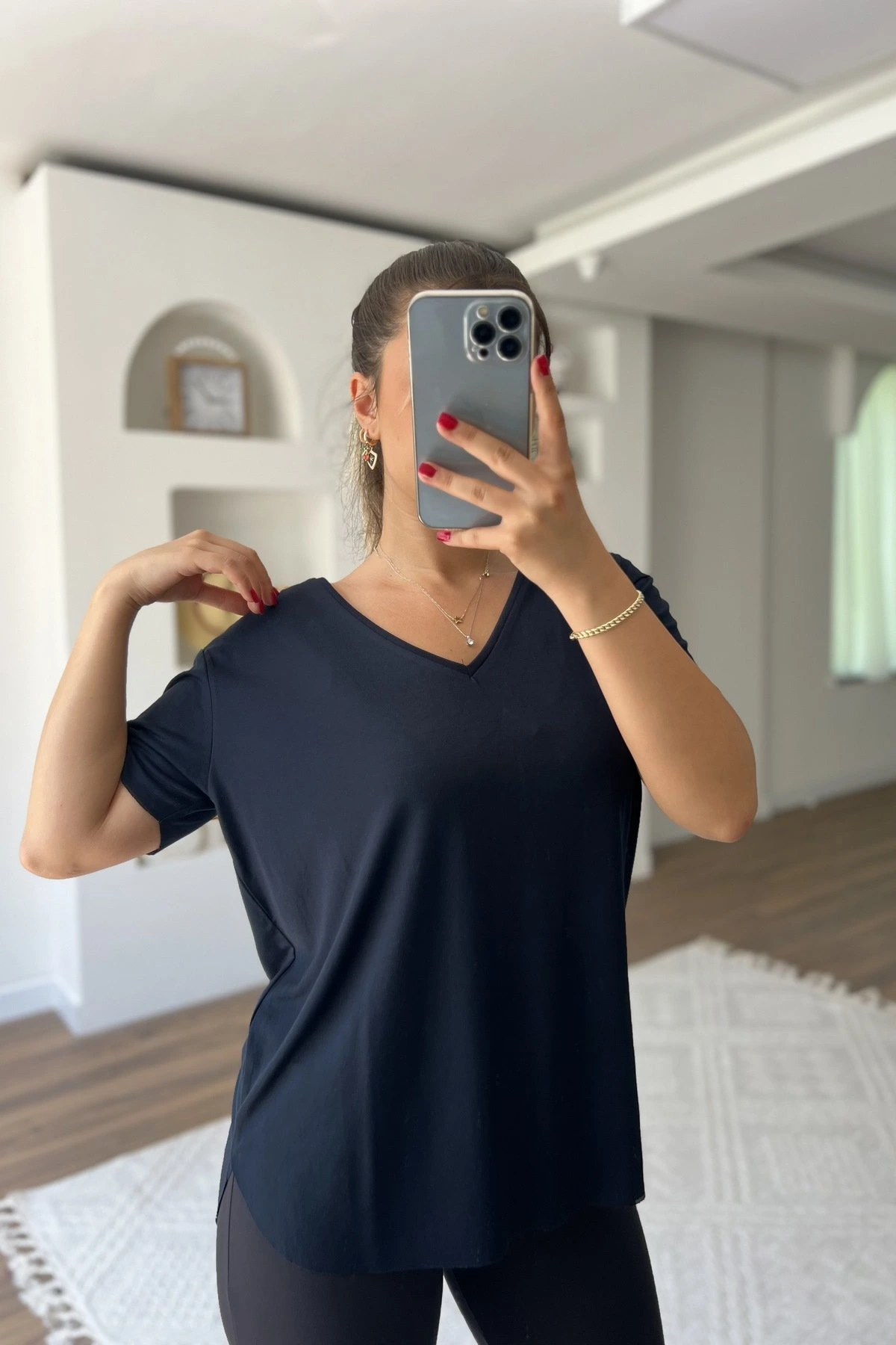 V YAKA LAZER KESİM LİKRALI MODAL TİŞÖRT – SİYAH