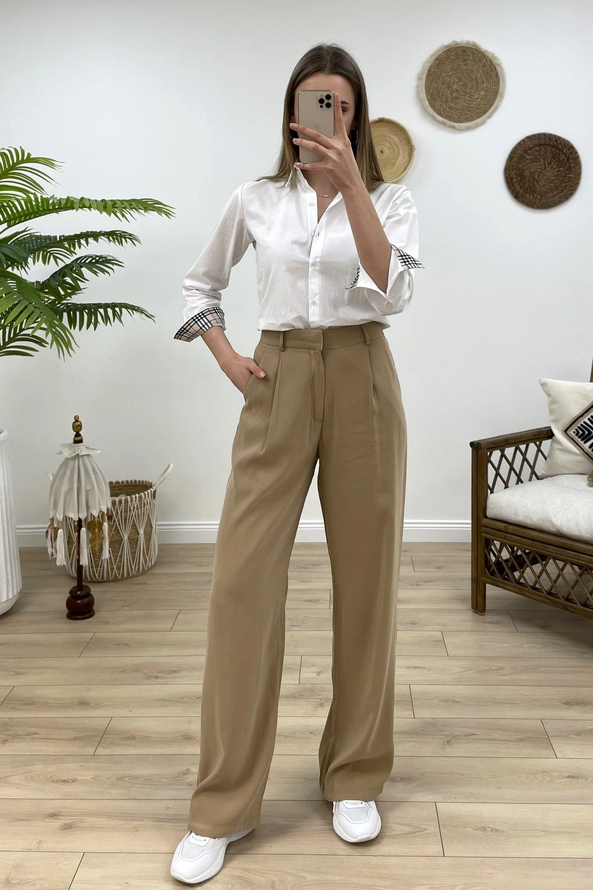 PAÇA ÇITÇITLI DERİ PANTOLON – VİZON