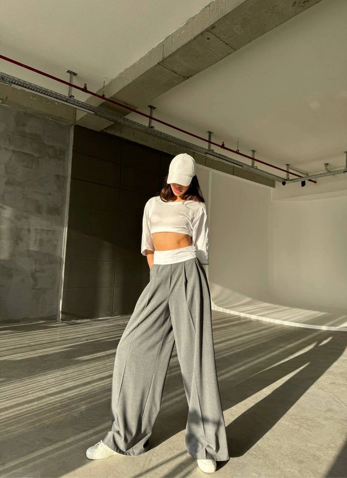 ARKA BEL LASTİK GARNİLİ PALAZZO VİSKON PANTOLON – GRİ
