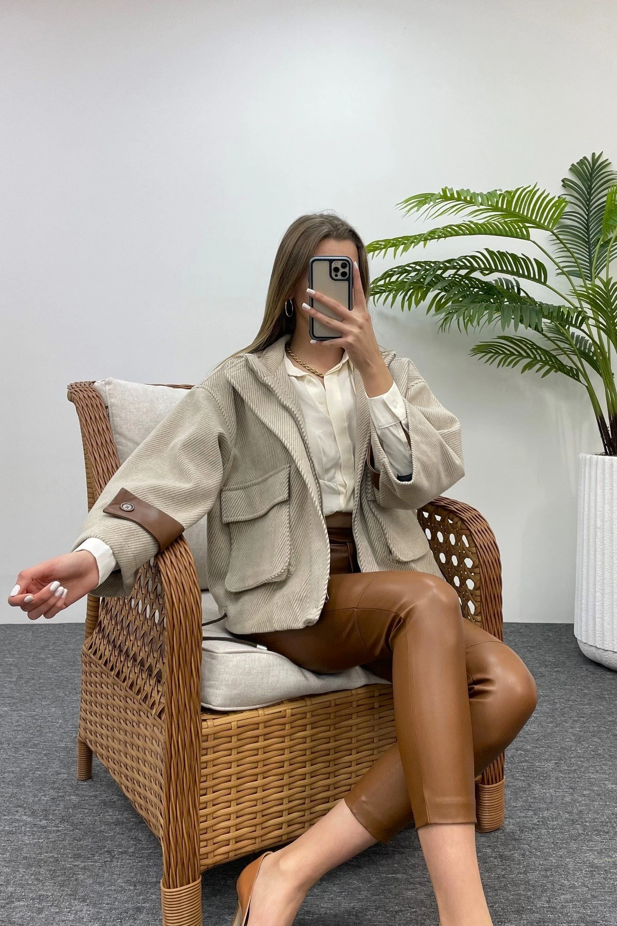 CEPLİ ÖN DİKİŞLİ DERİ PANTOLON – BEJ