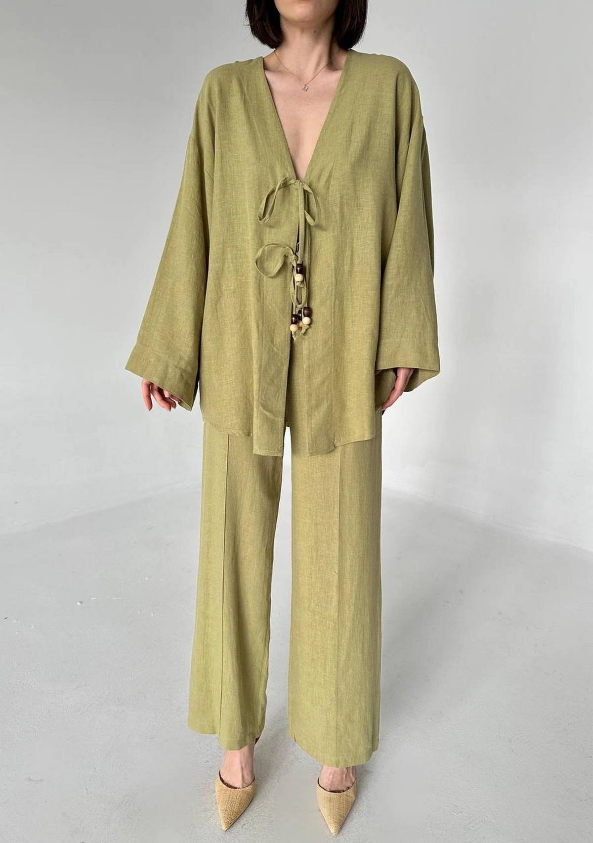 BAĞCIKLI KİMONO ASTARLI PANTOLON PAMUK TAKIM – HAKİ