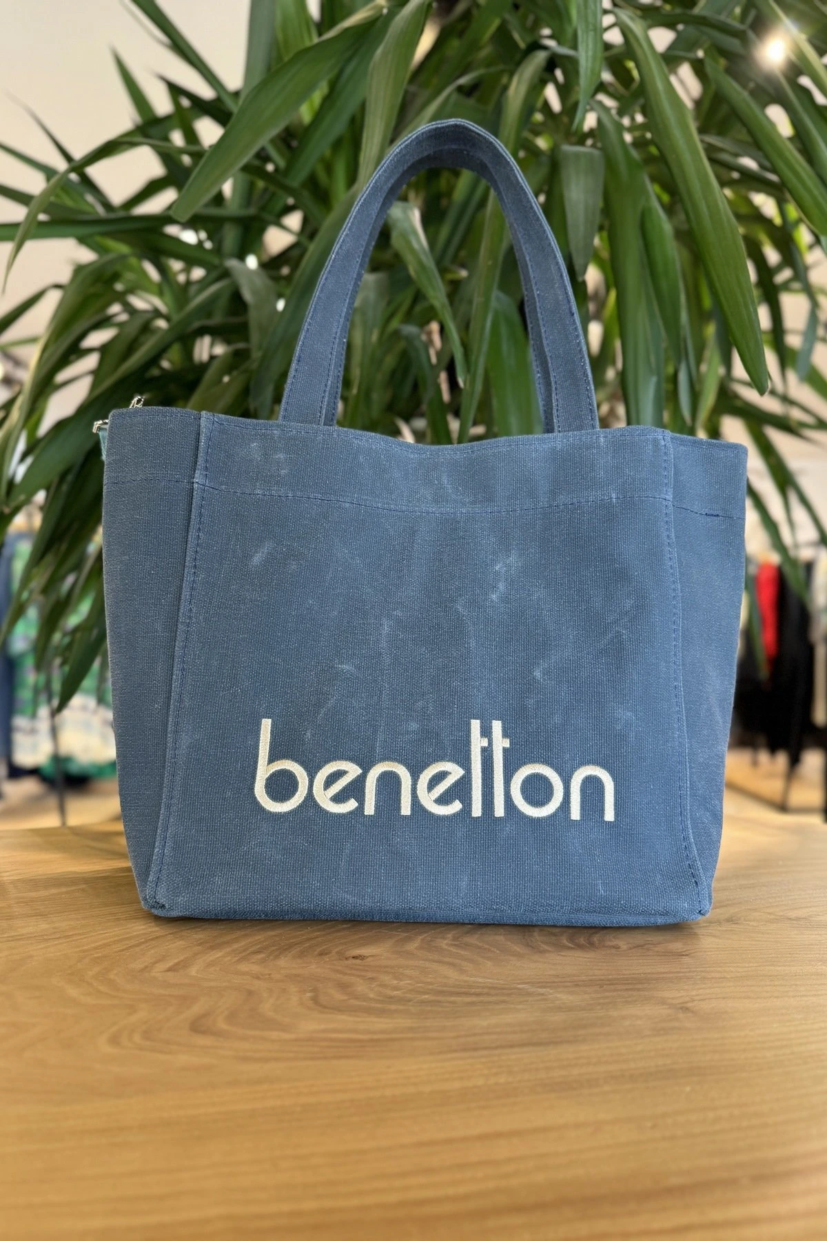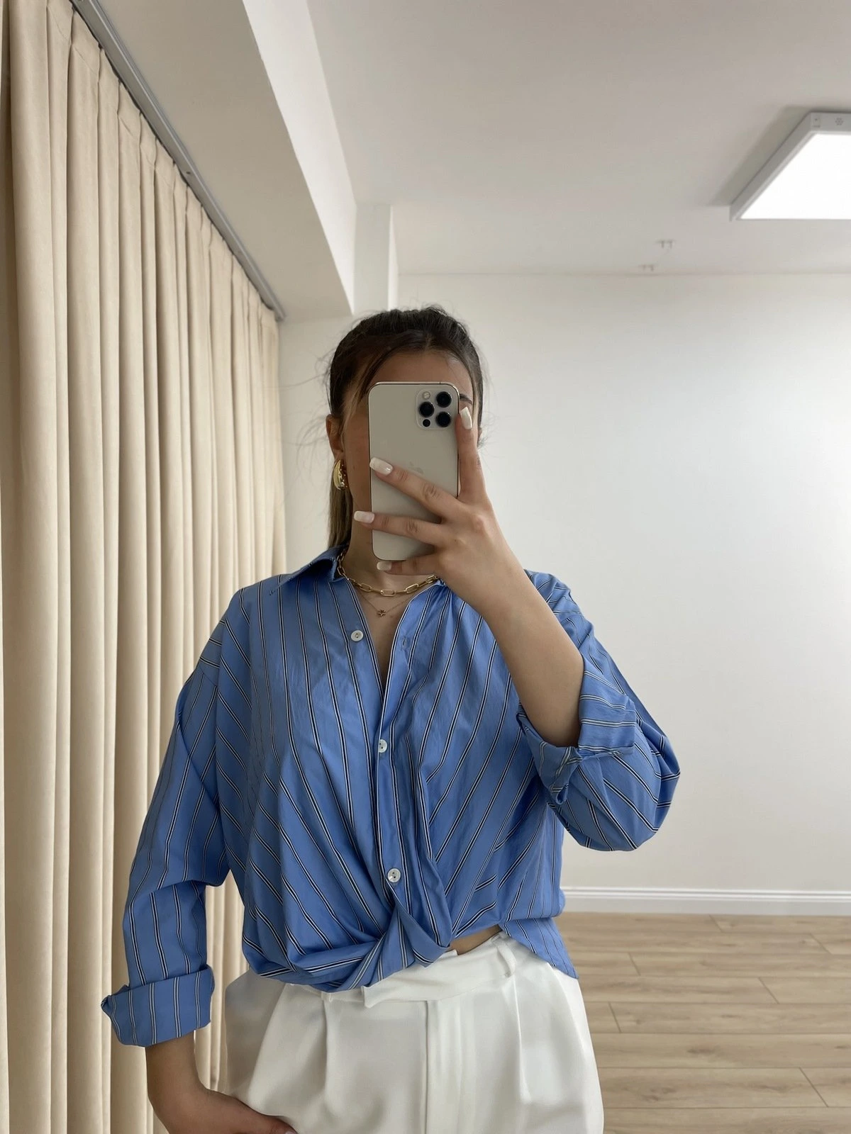 GENİŞ YAKA ASİMETRİK PAMUK GÖMLEK – MAVİ