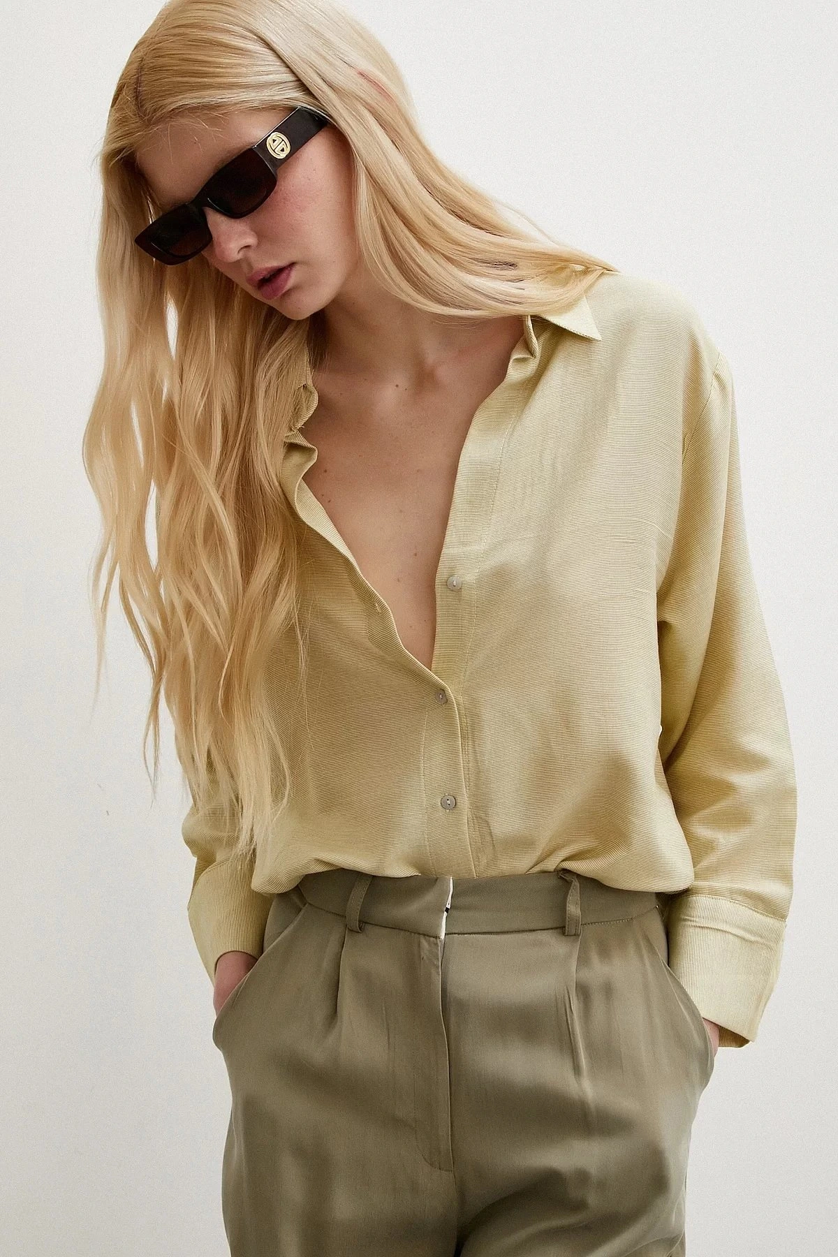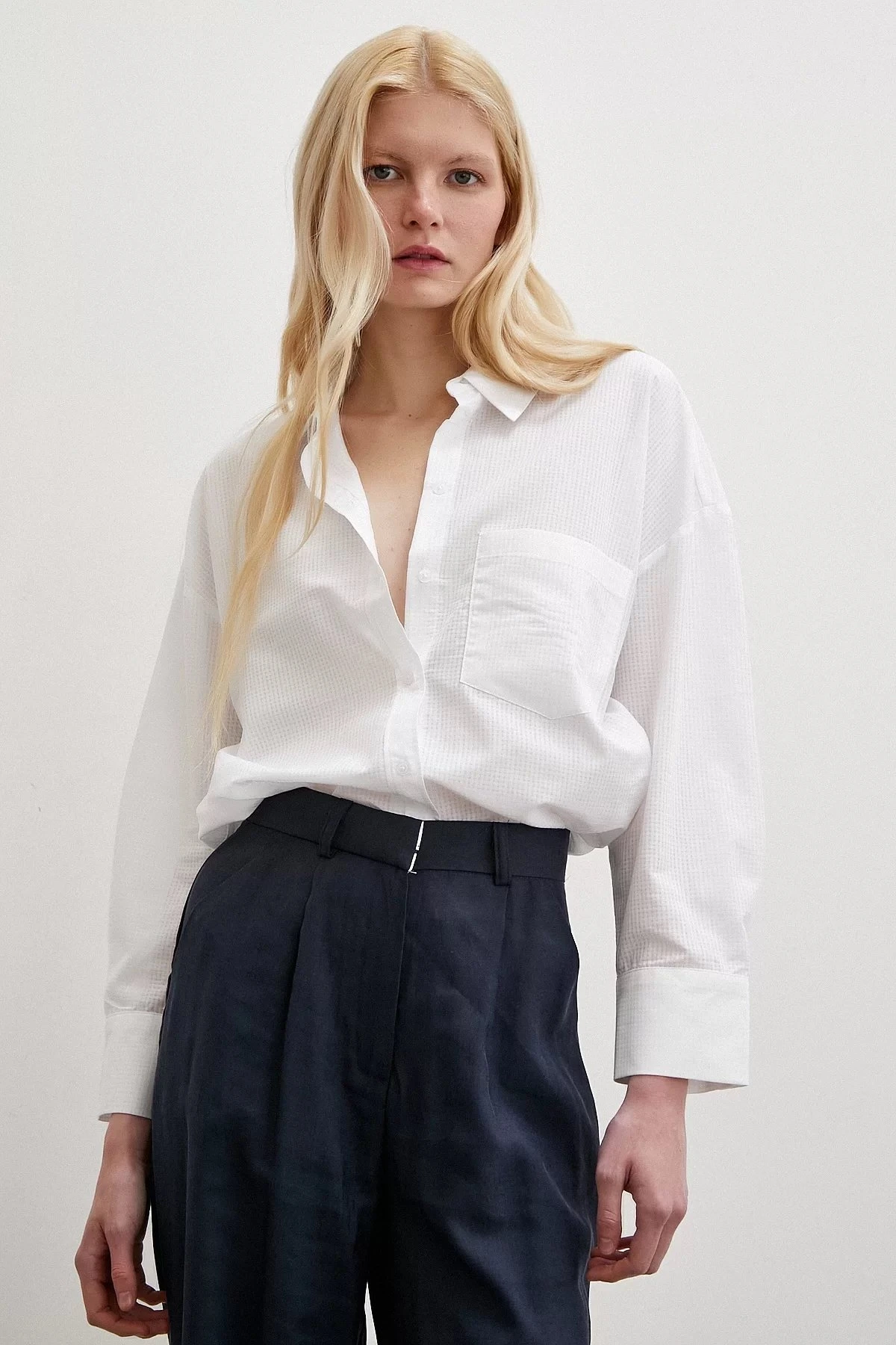 GENİŞ YAKA ASİMETRİK PAMUK GÖMLEK – BEYAZ