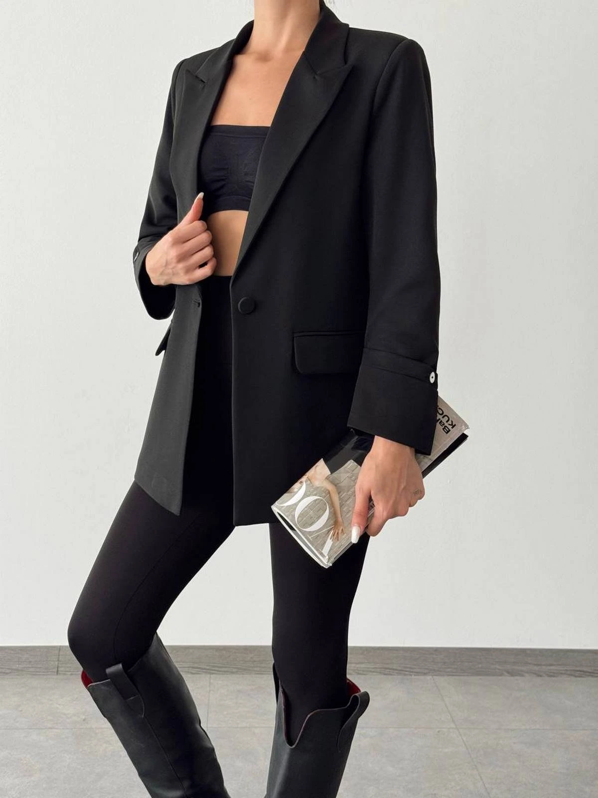 D88637 KARE YAKA GOLD DÜĞME VATKALI CEKET – SİYAH