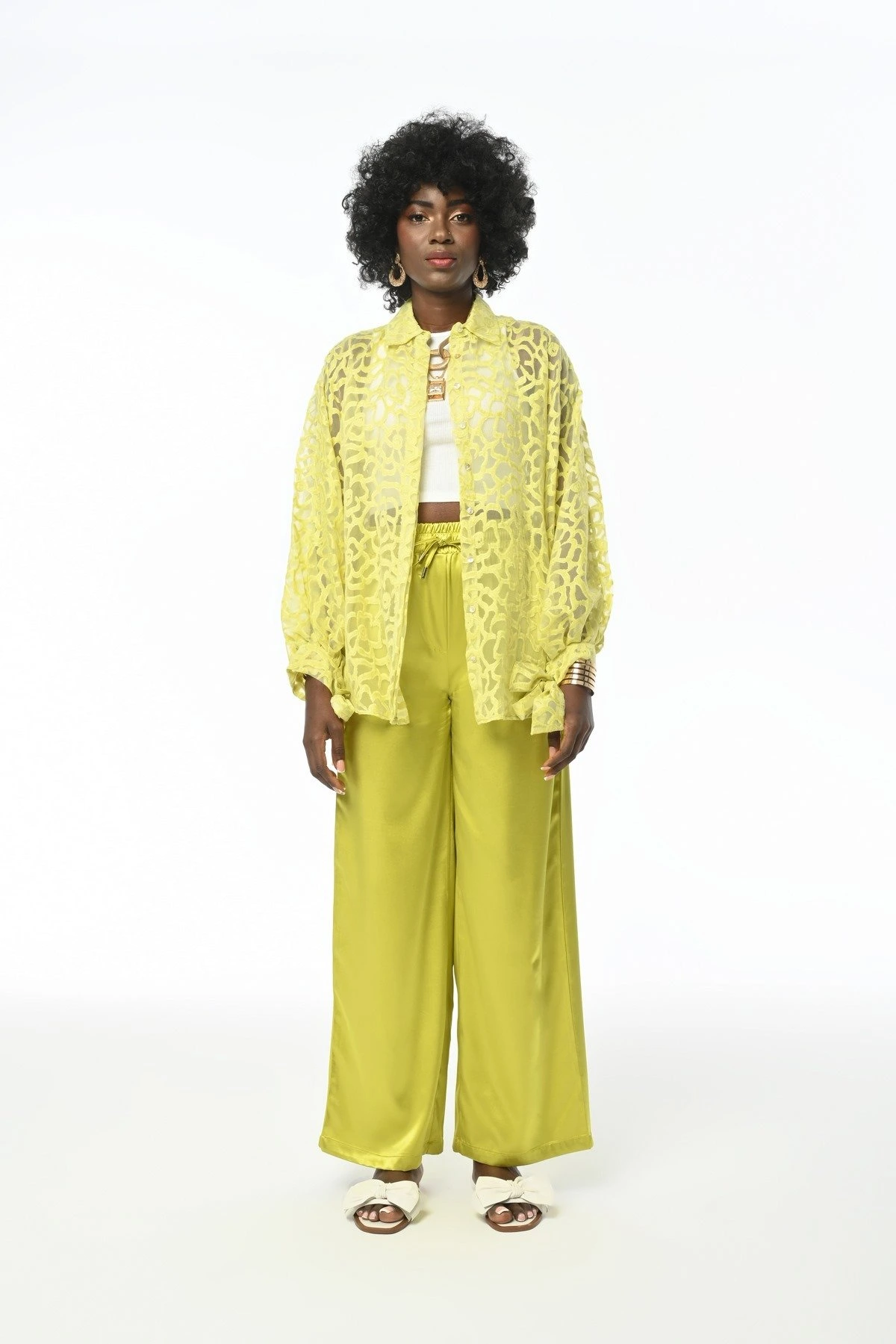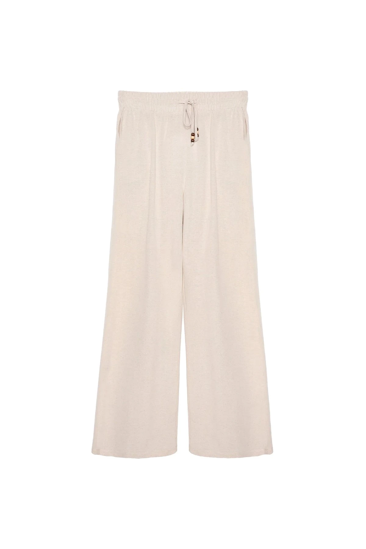 KEMERLİ LİKRALI ÖN DİKİŞLİ BOL PAÇA PANTOLON – BEYAZ