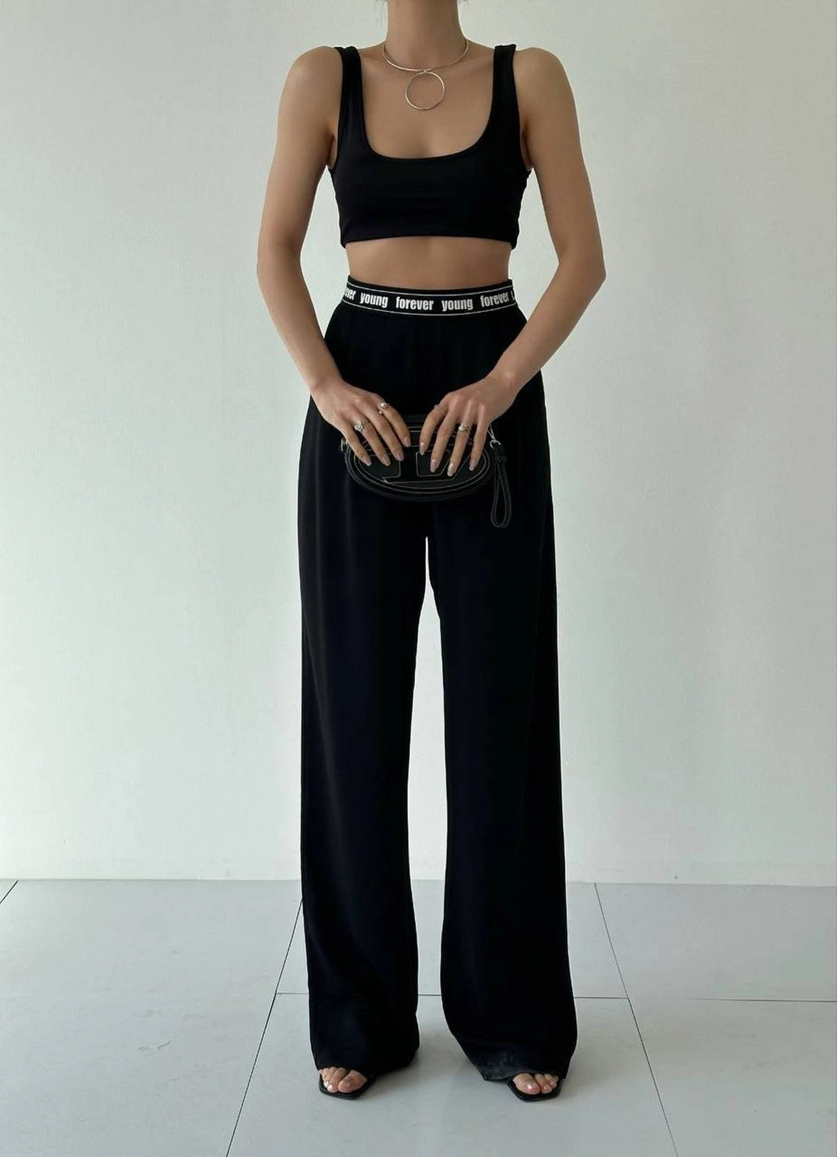 KEMERLİ LİKRALI ÖN DİKİŞLİ BOL PAÇA PANTOLON – SİYAH