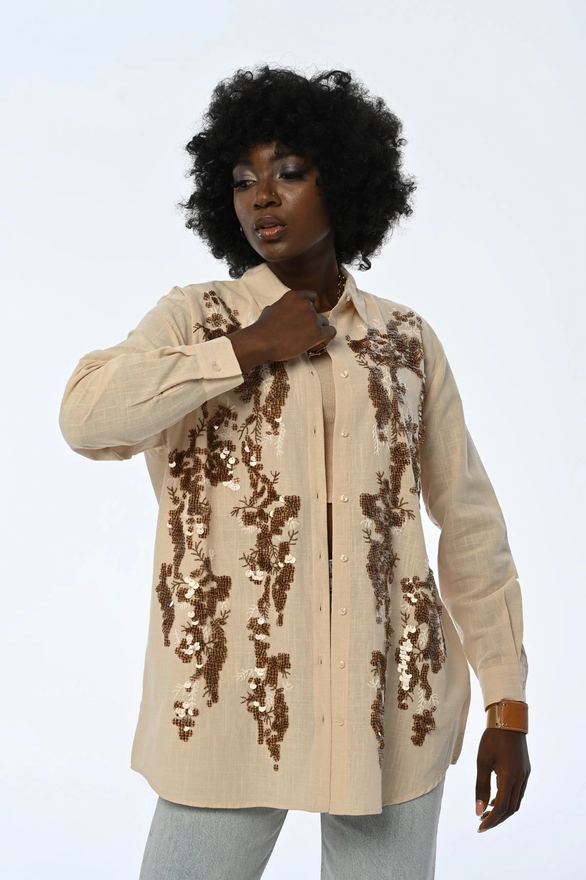 RENKLİ DESEN MODAL SALAŞ GÖMLEK – RENKLİ