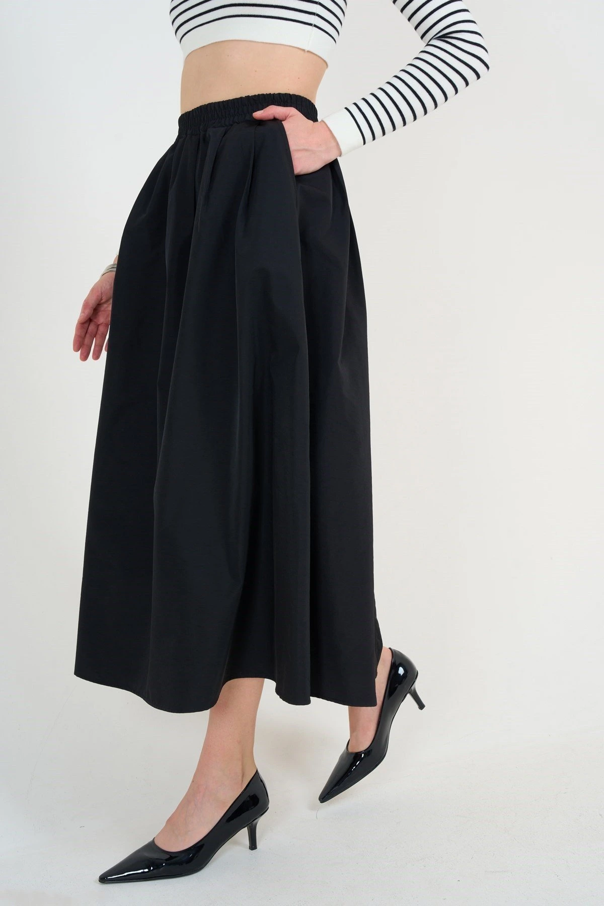 YÜN EFEKT ÇİFT PİLE CEPLİ PANTOLON – SİYAH