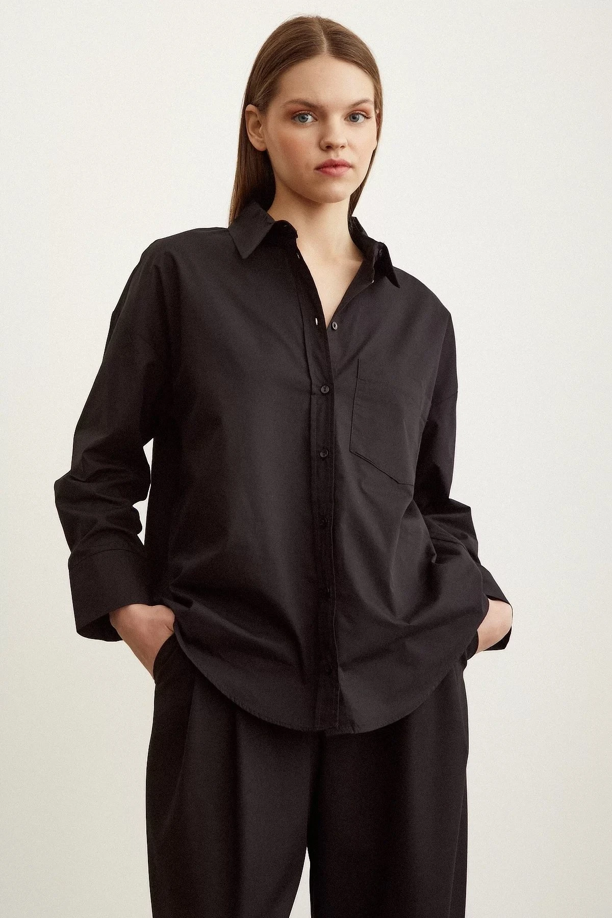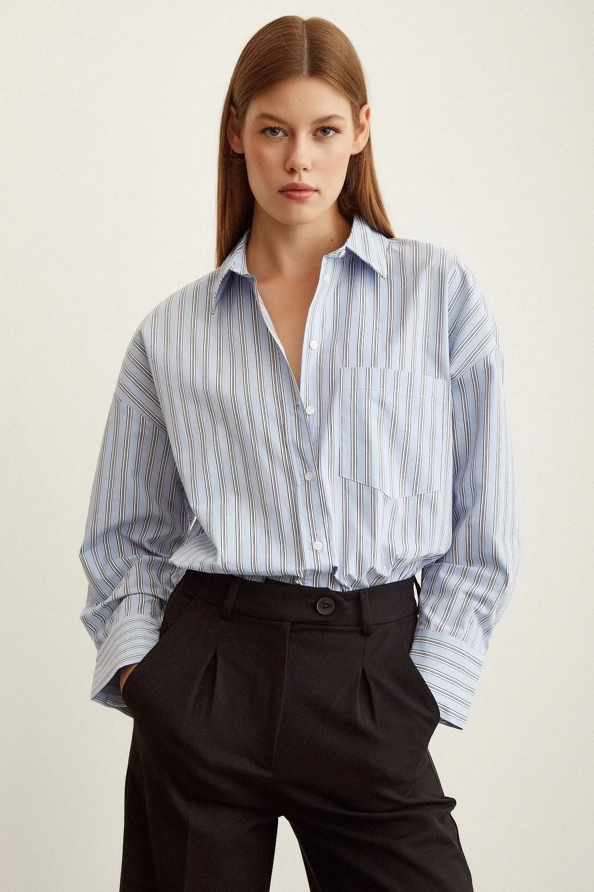 YÜN EFEKT ÇİZGİLİ ÇİFT CEP SALAŞ GÖMLEK – SİYAH