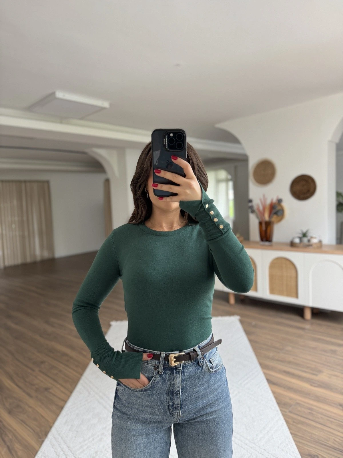 OMUZ VE ÖN DİKME TAŞ MODAL SWEAT – YEŞİL