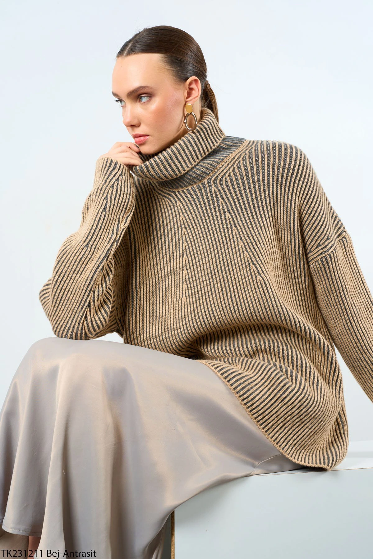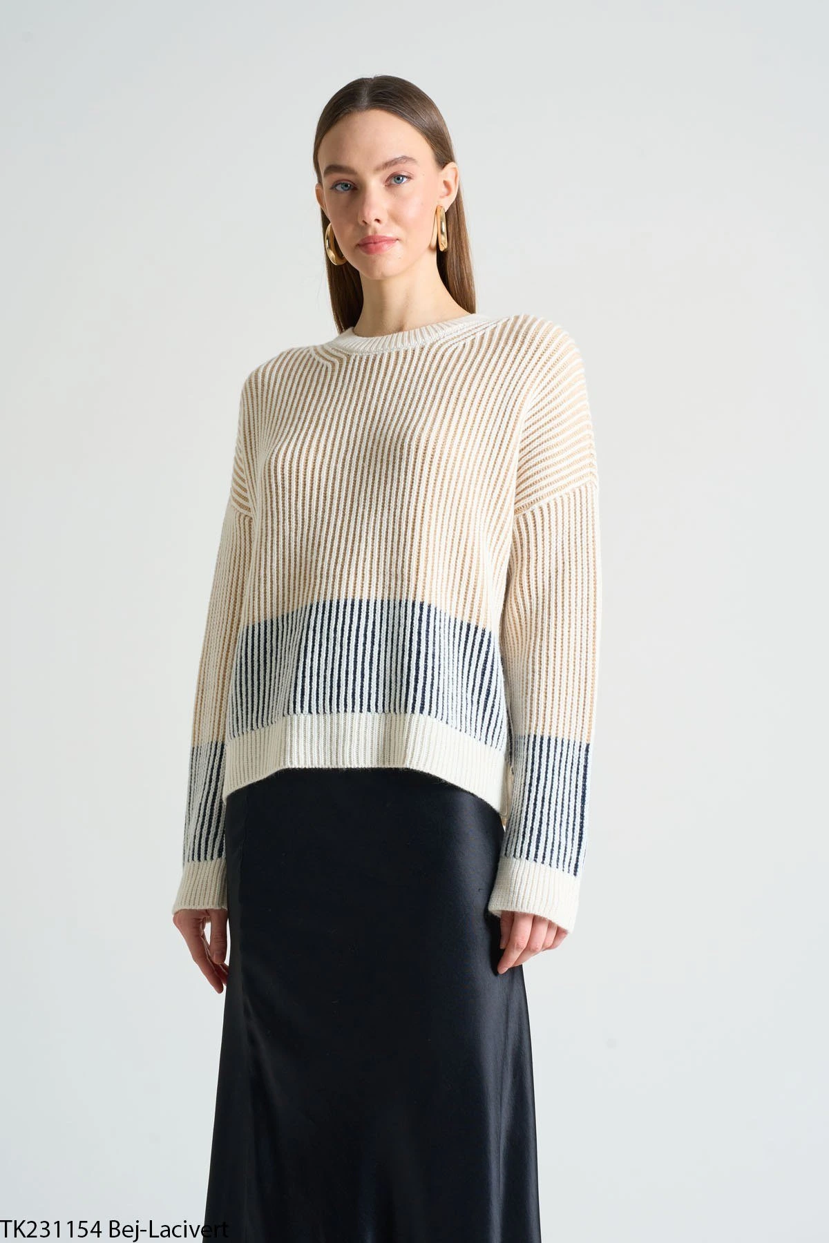 POLO YAKA KENDİNDEN KOL KAZAK – BEJ