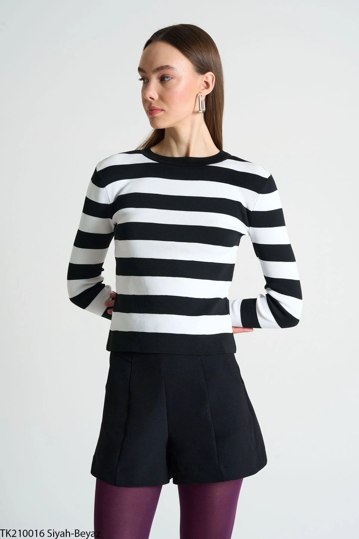 POLO YAKA DÜĞMELİ VİSKON TRİKO ÇAN ELBİSE – SİYAH BEYAZ