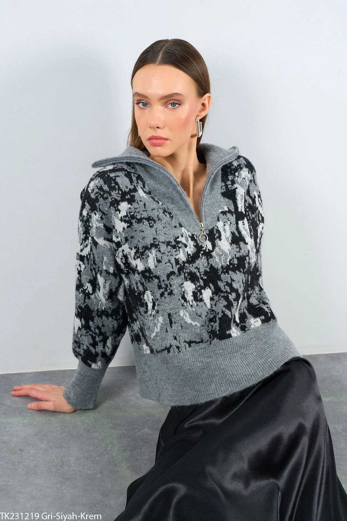 POLO YAKA KENDİNDEN KOL KAZAK – GRİ