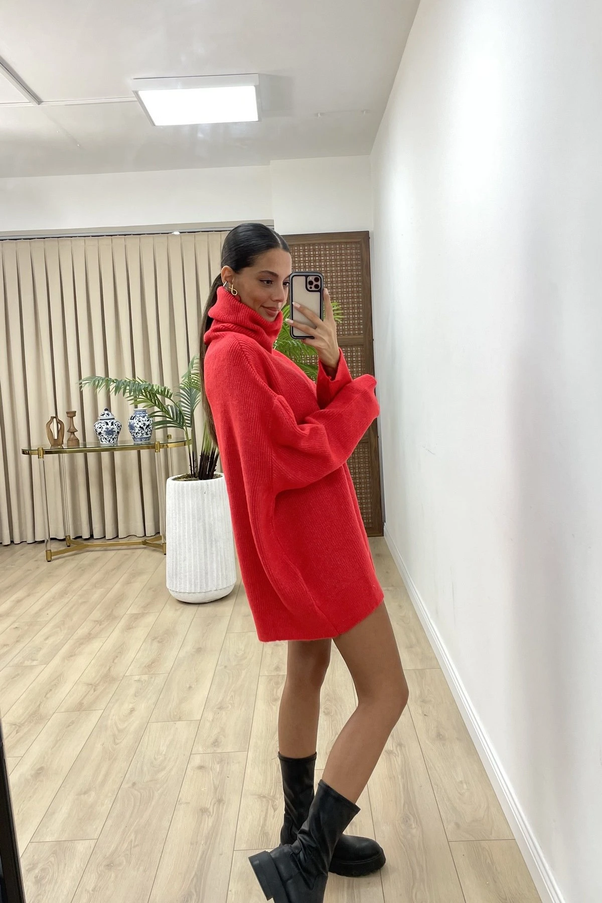 SAÇ ÖRGÜ FERMUARLI DİK YAKA KAZAK – SİYAH