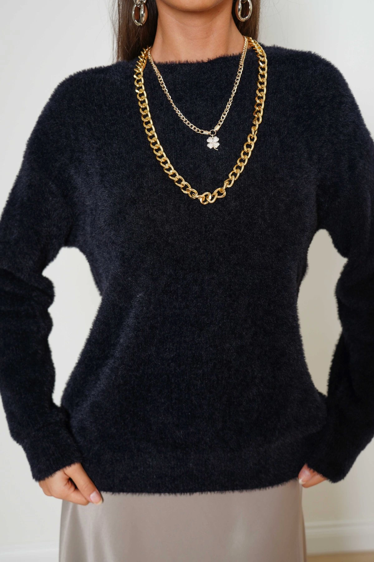 OMUZ GOLD DÜĞME FİTİLLİ BALIKÇI YAKA VİSKON KAZAK – SİYAH
