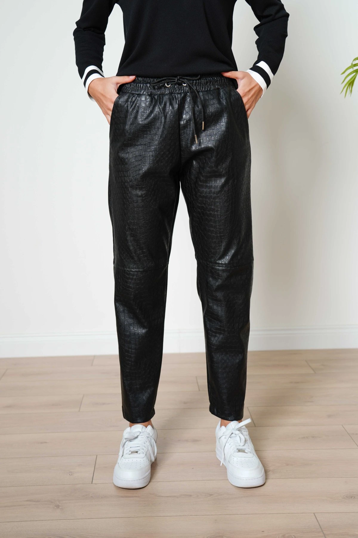 TEK PİLE KENDİNDEN TOKALI KUMAŞ PANTOLON – SİYAH