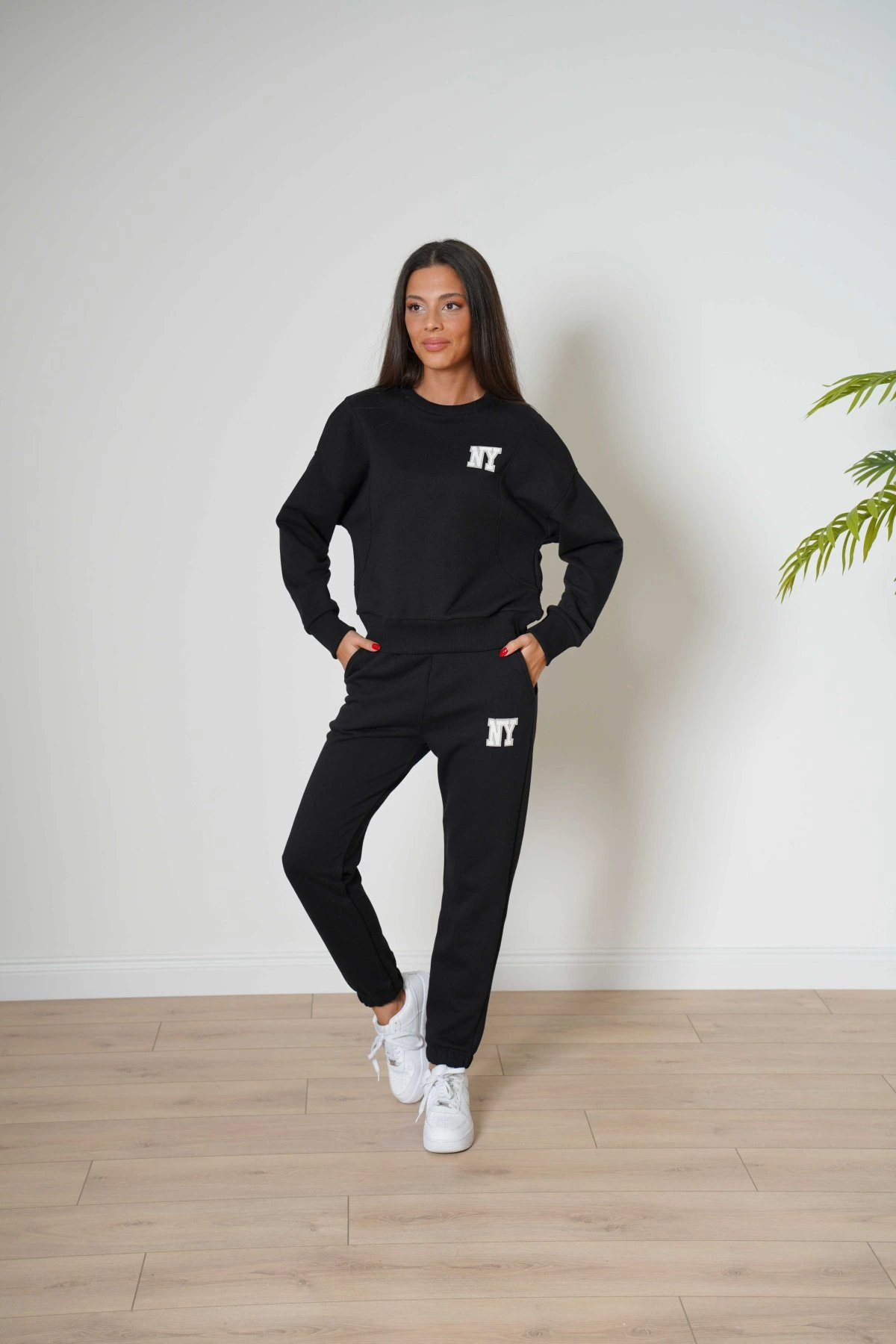 DİK YAKA KAPAK CEPLİ MODAL TAKIM – SİYAH