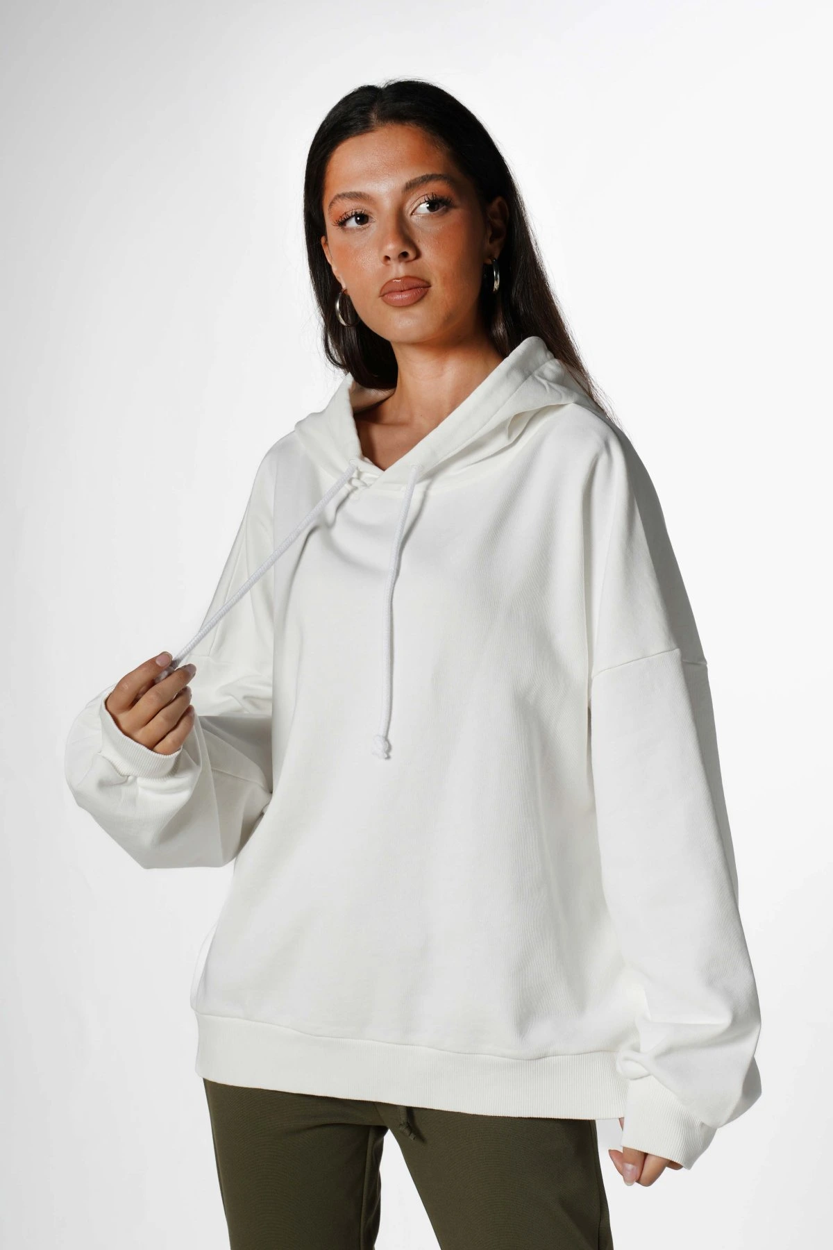 KAPÜŞONLU PAMUK SALAŞ SWEAT – EKRU