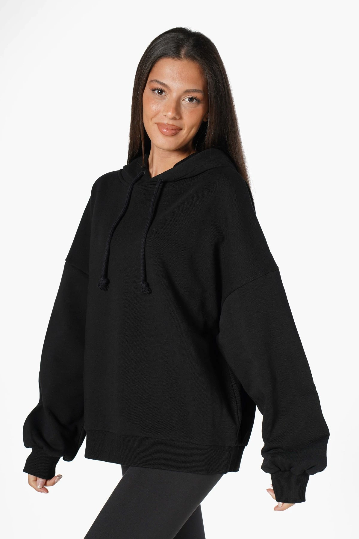 KAPÜŞONLU PAMUK SALAŞ SWEAT – SİYAH
