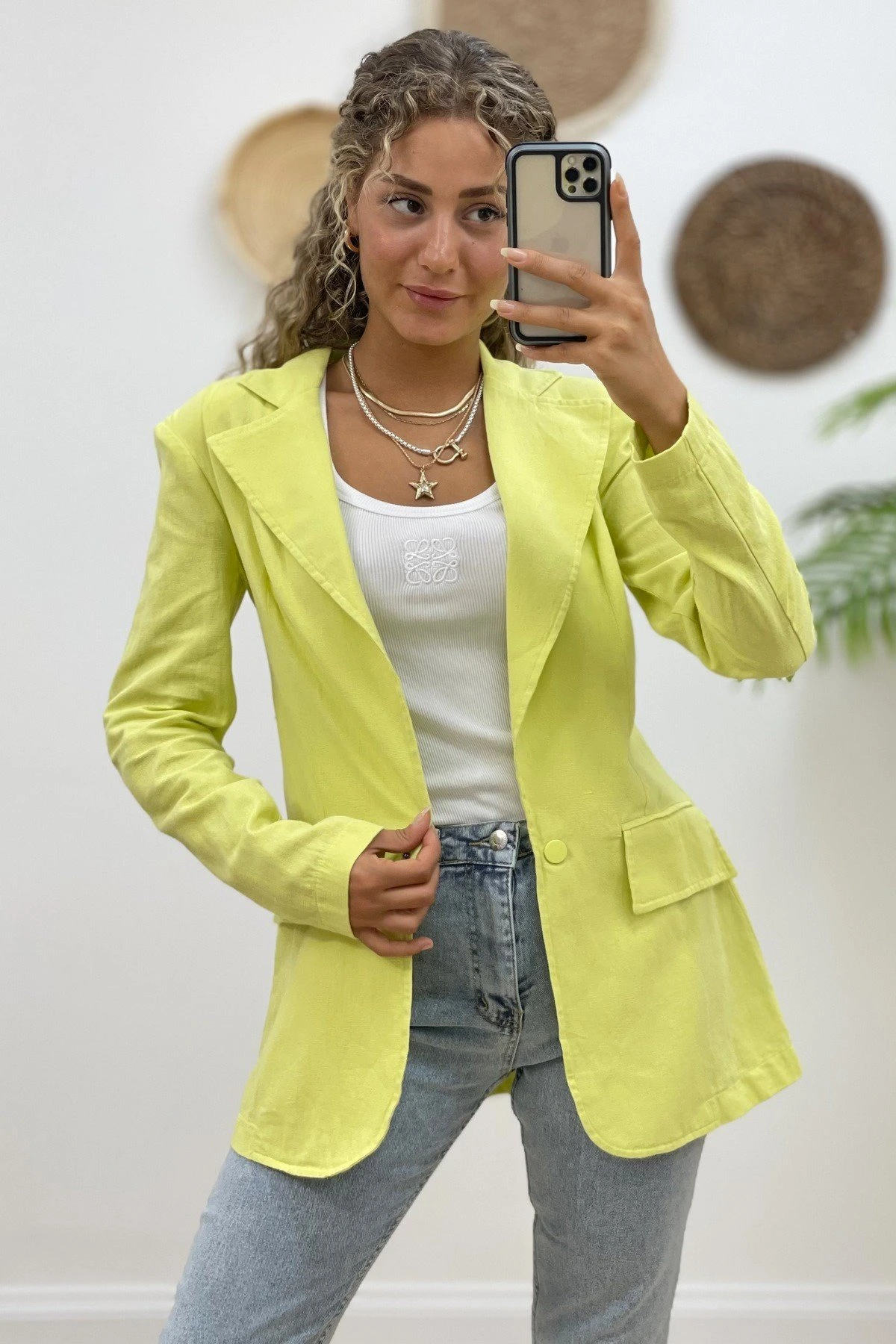 CEP KAPAKLI ASTARSIZ SLİM CEKET – LİMON