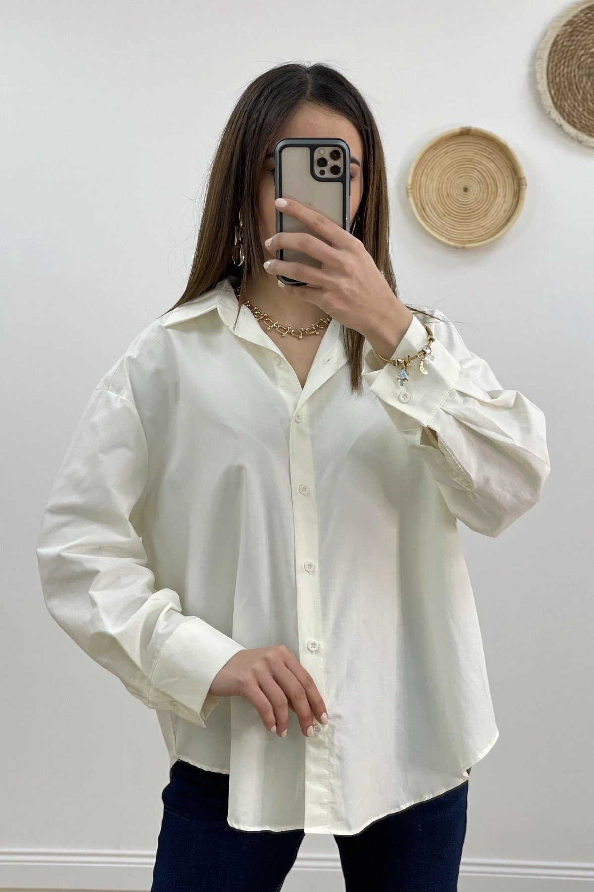ARKA A PİLE PAMUK GÖMLEK – EKRU