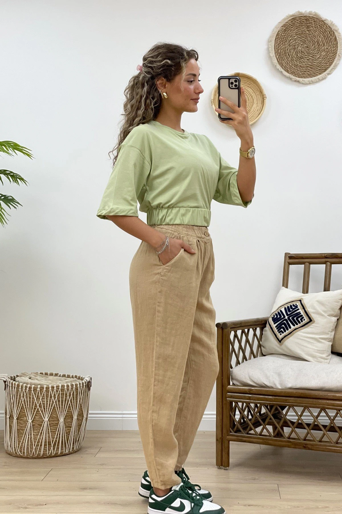 BEL KALIN LASTİK CROP TİŞÖRT – AÇIK HAKİ
