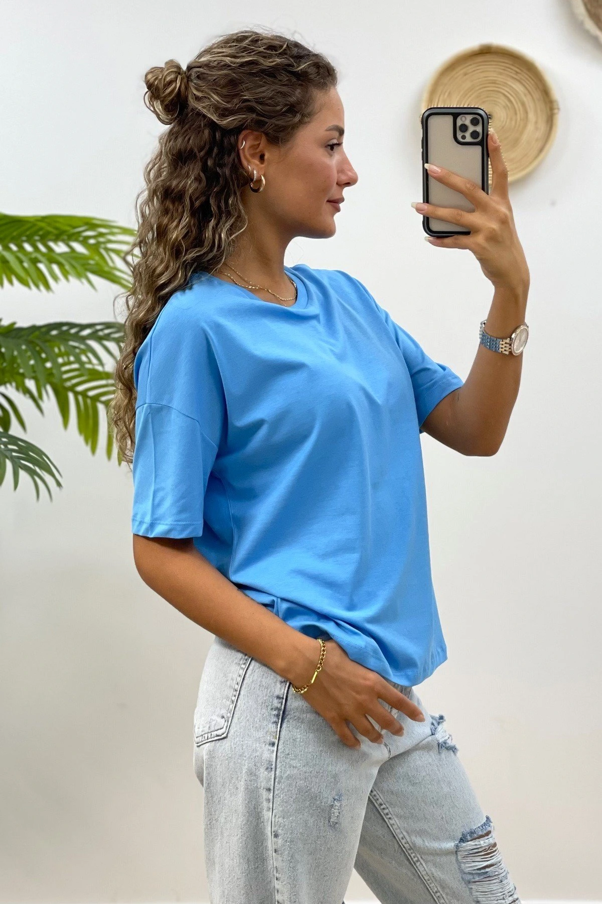 BİSİKLET YAKA SALAŞ TİŞÖRT – SAKS