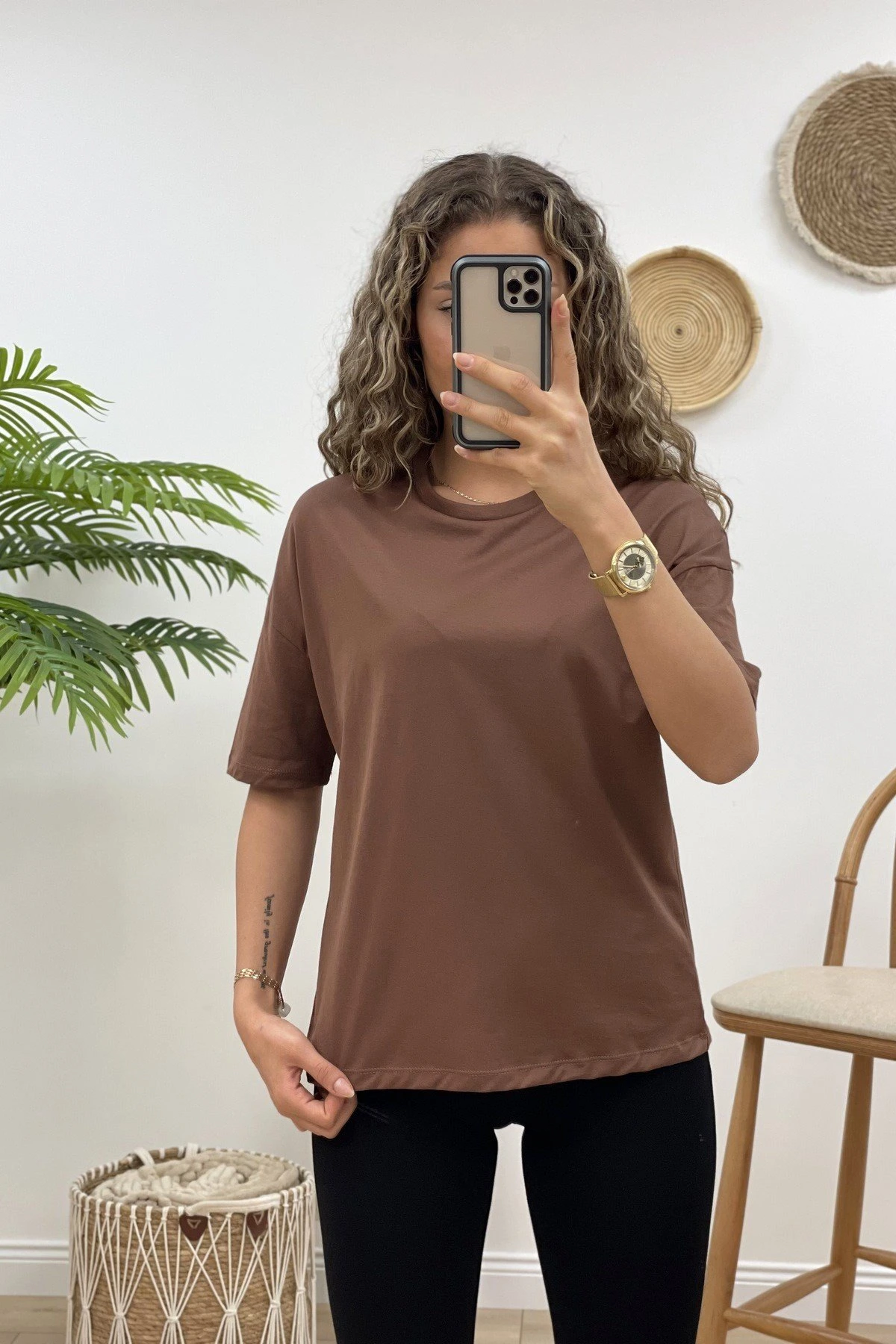 BİSİKLET YAKA SALAŞ TİŞÖRT – KAHVE