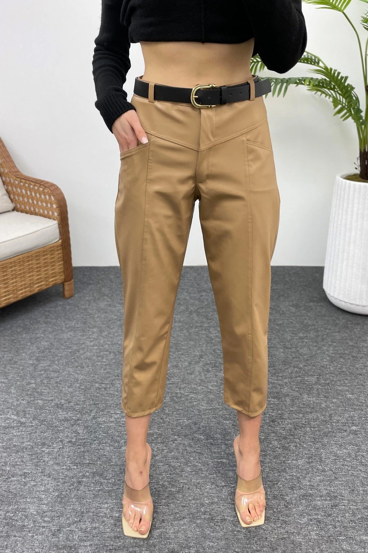 CEPLİ ÖN DİKİŞLİ DERİ PANTOLON – BEJ