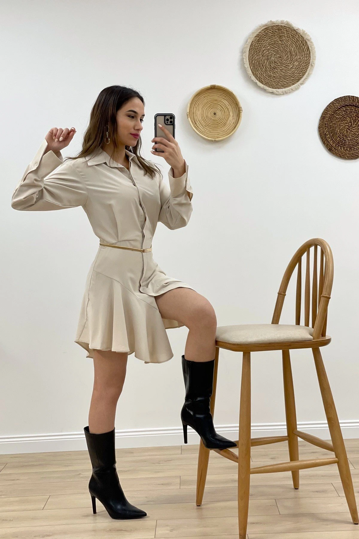 ETEĞİ VOLANLI GÖMLEK ELBİSE – TAŞ