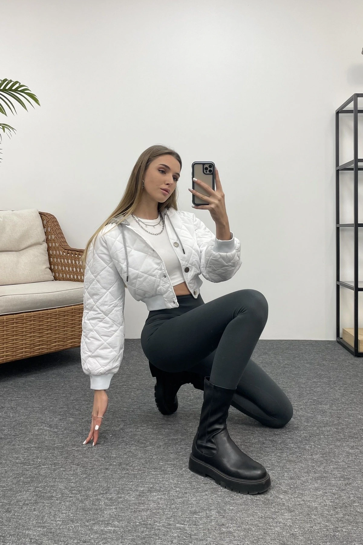 KAPÜŞONLU KAPİTONE KISA MONT – BEYAZ