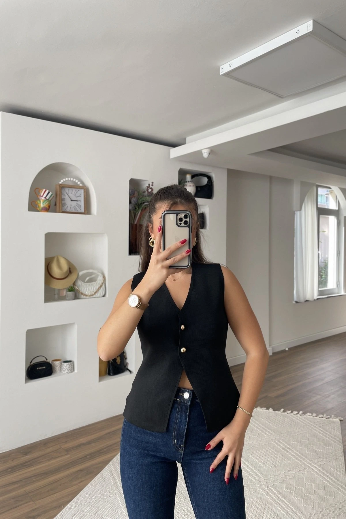 FİTİLLİ 3 DÜĞME KISA YELEK – SİYAH