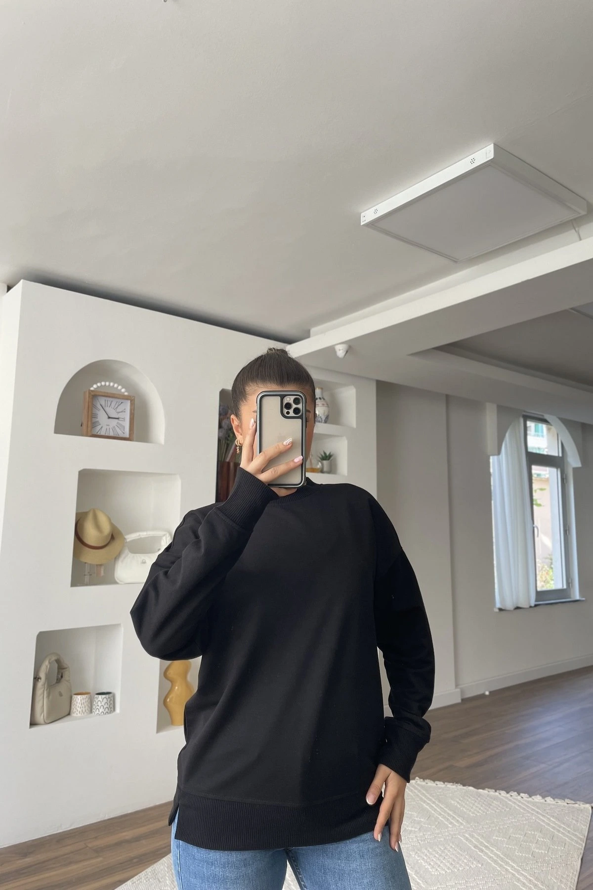 BİSİKLET YAKA AJURLU TRİKO KAZAK – SİYAH