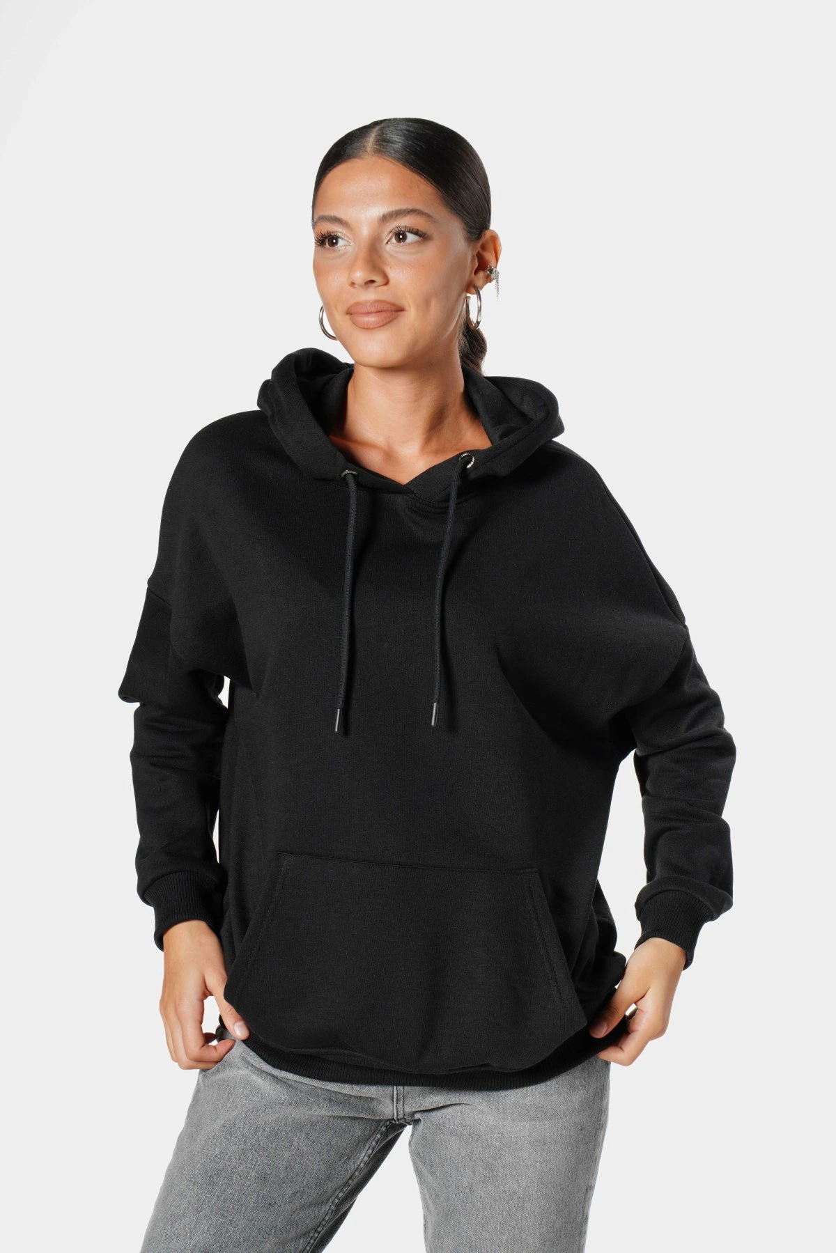 KAPÜŞONLU FERMUARLI PAMUK SWEAT – SİYAH