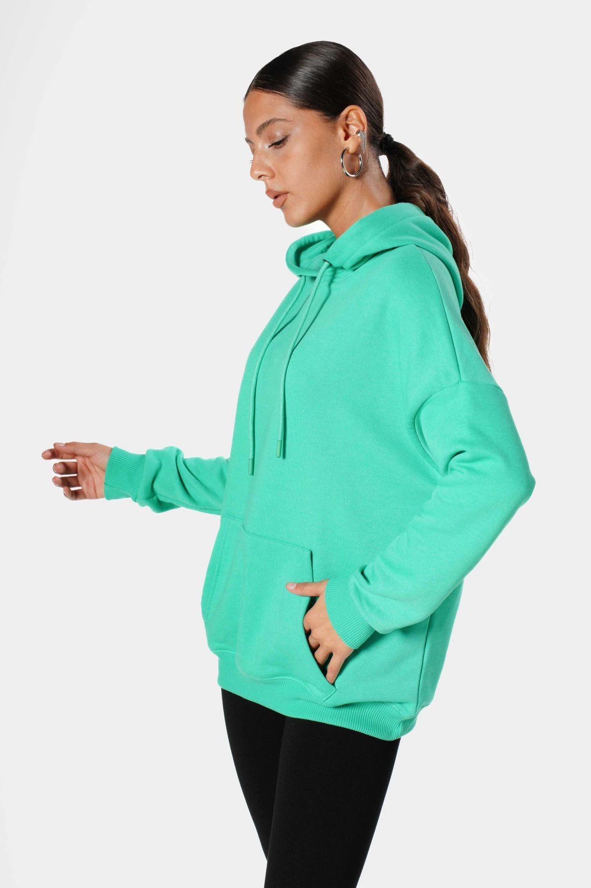 KAPÜŞONLU FERMUARLI PAMUK SWEAT – NEON YEŞİL