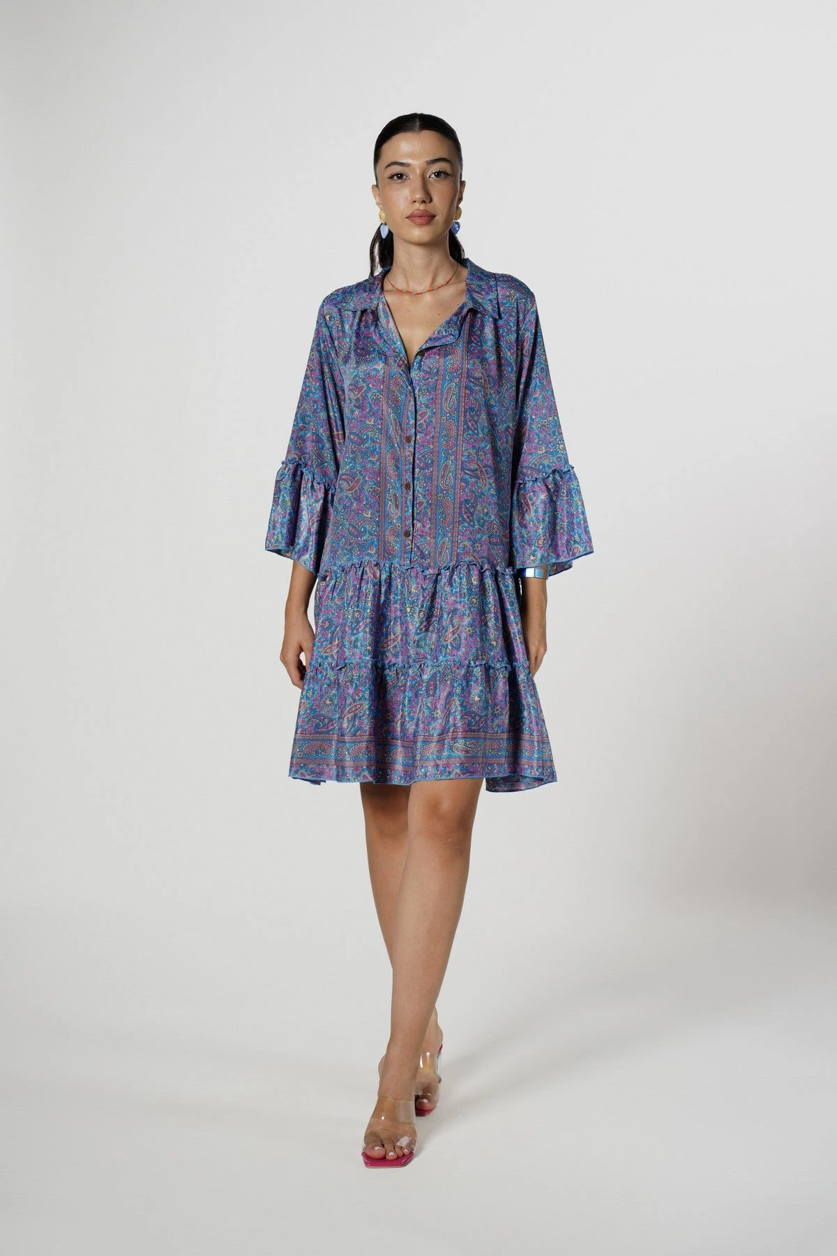 ÖN ARKA V MAXİ BOY KOT ELBİSE – MAVİ